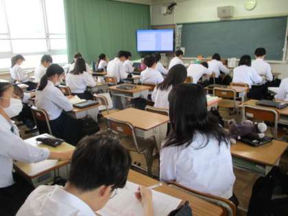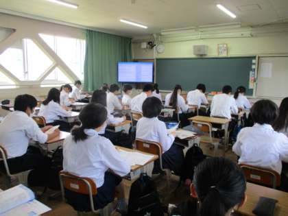 きょうは、8:30からリモートで教育実習生の紹介をしました。その後、1限の準備をしている3年生です。