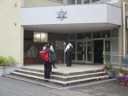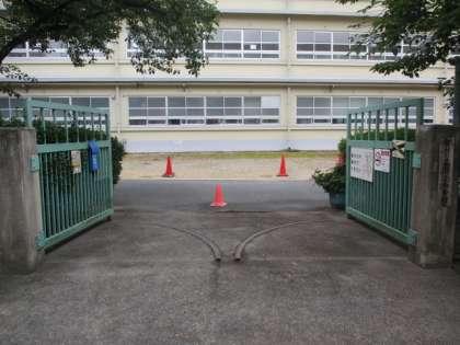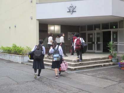 修学旅行の当日を迎えました。通用門が開門されて、3年生が登校してきました。出席確認と健康確認を行っています。みんな元気そうでなによりです。