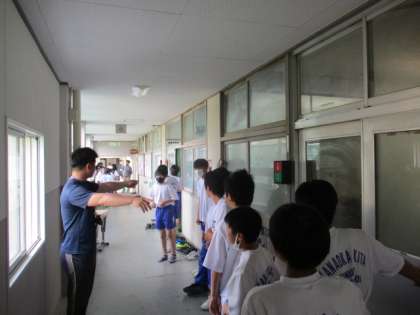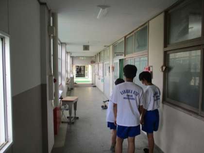 本日、1年生全員と、2・3年生の抽出生の心電図検査を行いました。1年2組が終わった後、3組が並んでいます。