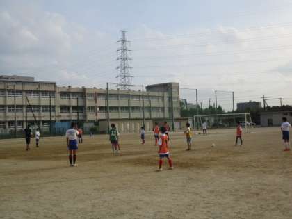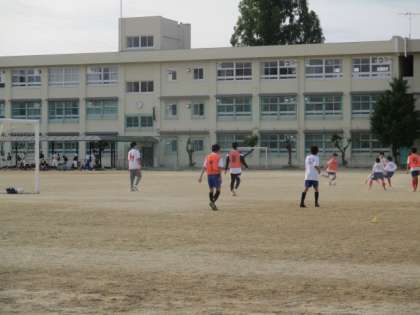 サッカー部は、今年は1年生が多く入部し、人数が増えて活気があります。いい練習ができていますね。きょうは、教育実習生さんも参加してくれました。
