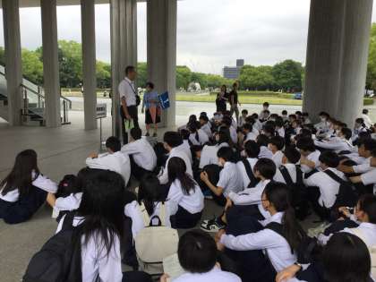 見学終了です。いろいろな表情をして集まってきました。多くのことを感じてくれたと思います。