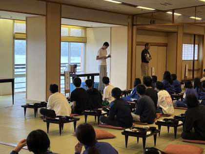 実行委員からは「雨に負けず頑張りましょう」などの力強い挨拶がありました。きょうも一日よろしくお願いします。