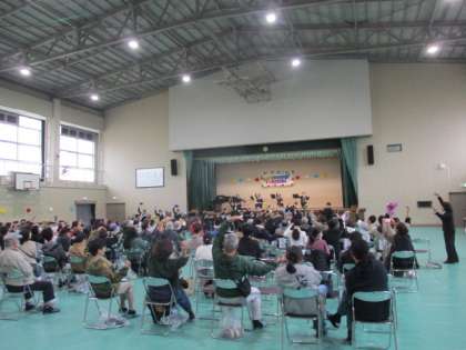 予定の曲が終わると会場からアンコールの声がかかり、「ヤングマン」の演奏が始まりました。みなさんと一緒に踊りながら楽しむことができたステージでした。そして、最後はプログラムの裏表紙にある「ふるさと」をみなさんと合唱し、『金岡北中学校区青少年健全育成協議会主催 金岡北中学校吹奏楽部 第16回定期演奏会』を無事終えることができました。多くの方にご観覧いただきまして本当にありがとうございました。