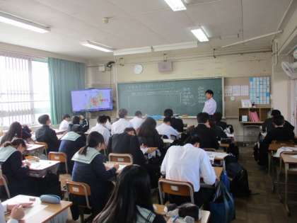 2年生の英語では、はじめに新しく習う英単語をモニターに映して、みんなで発声練習をしました。きょうは、いつも以上に発音よく大きな声が出てました。単語の意味も確認し、「KotaはなぜAshimとコミュニケーションできた?」をめあてに学習しました。社会の授業は、「中部地方の自然をとらえよう」をめあてに、日本のアルプスは、山は川を作り、平野や盆地を作って地形が成り立っていることなどを学習しました。
