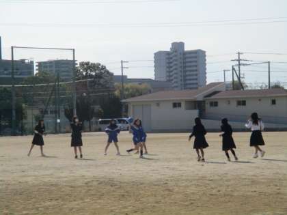 お昼の休憩時間の外での様子です。サッカーやドッジボールで楽しんでいるところに予鈴が鳴りました。切り替えて校舎内へダッシュ!です。