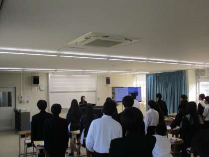 2年生の音楽の授業では、ナポリの民謡「サンダルチア」の学習をしました。「カルツォーネ」の意味は「歌」であることや、下を巻くように発音しながら歌詞を読む練習など、イタリア語の学習をしました。歌はもちろんイタリア語で、みんなでしっかり発音しながら歌いました。