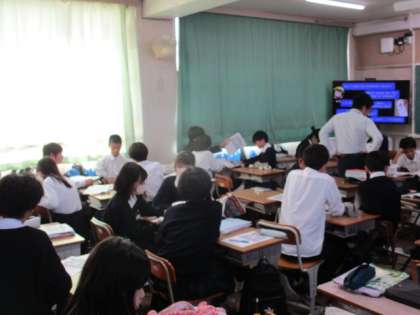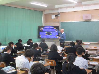 きょうの1年生の英語は、ダーウィン先生の授業です。「飲食店で注文するやり取りができること」をめあてに、モニターに映した新しい英単語をみんなで発音し、意味も確認しました。また、2人組や3人組で店員さんとお客さんになり、メニュー表をみながら注文する言葉を考えてから練習をしました。そのあと、みんなで練習の成果を発表をしました。