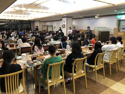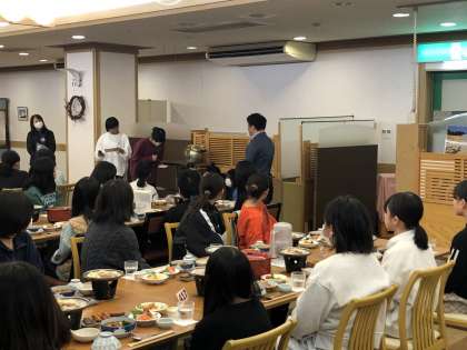 夕食会場で入館式を行いました。本日と明日にお世話になる宿舎スタッフの方に代表生徒より挨拶をしました。短い時間ですが、よろしくお願いいたします。