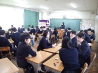 自分で今まで行ったことのある場所を英語で紹介します。一人ひとりがパワーポイントにして、その内容を発表し、クラスの友達に評価してもらいました。担当の先生から、「発表の仕方が上手になったね」という話をしてもらいました。さすが!3年生ですね。