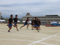 続いて、部活動対抗リレーです。盛り上がりました。また、続くPTA種目の綱引きも...