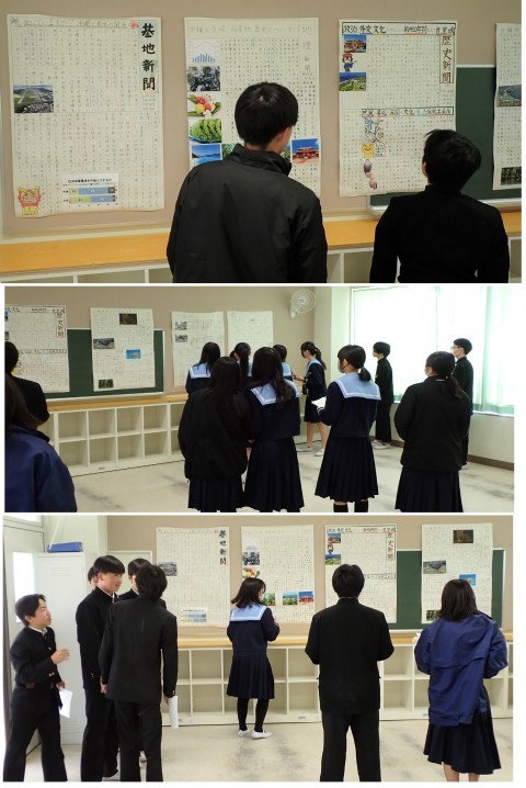本日の1時間めに、全グループの壁新聞を掲示し見学をしました。