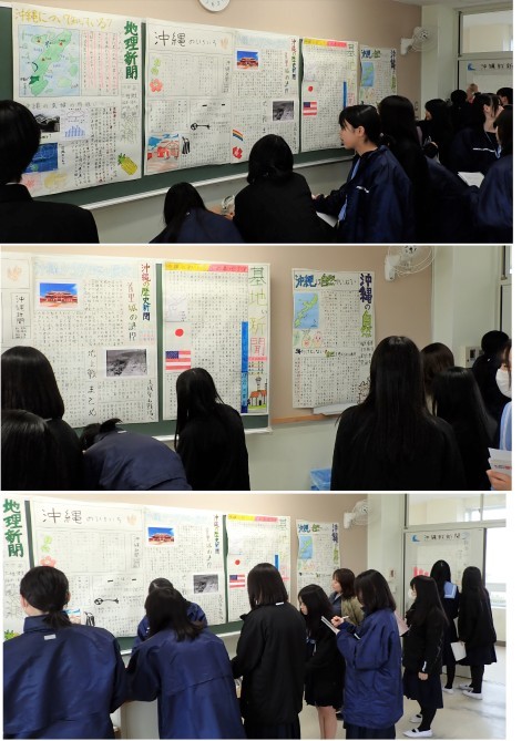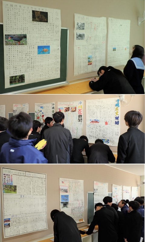 グループごとにテーマを決めて沖縄について調べ、壁新聞にまとめました。