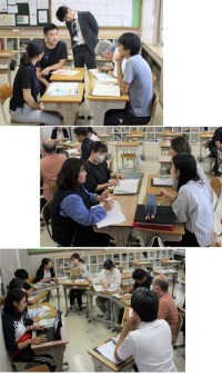 多くの先生に囲まれ、子どもたちは少し緊張していましたが、自らの問いを設定し、読み深め方を考えて積極的に発表資料