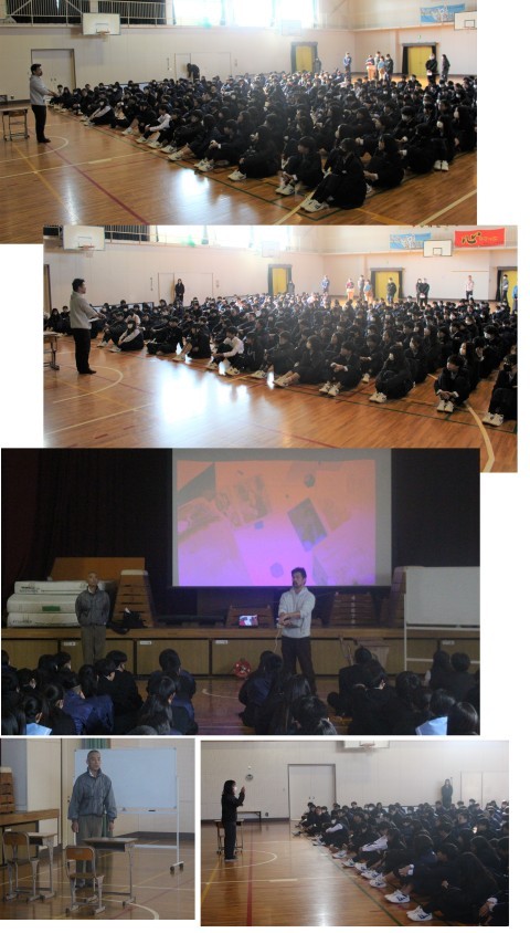 テスト終了後の4時間め、体育館におきまして、教育委員会 生徒指導課の安全指導員さんをお招きし「不審者対応訓練」を行いました。