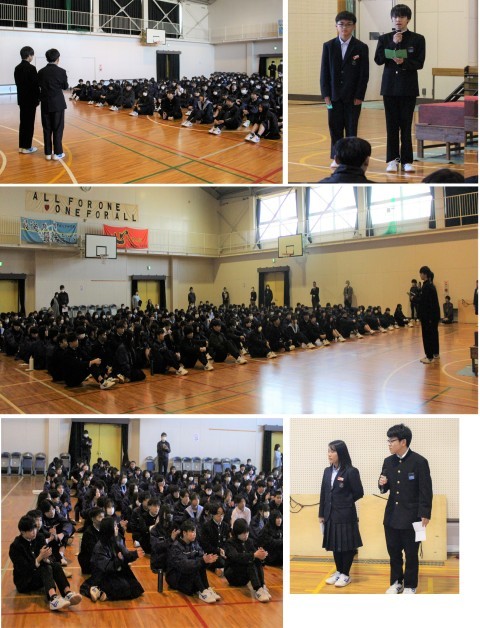まずはじめに、1・2年生の代表生徒から3年生に感謝の言葉を伝えました。