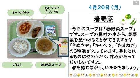 4/20 今日の給食です🐟🥔🍅