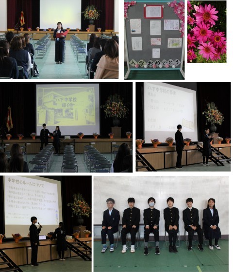 その後、生徒会役員のみなさんが、パワーポイントを示しながら、八下中学校の生活について説明をしました。