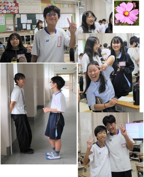 カメラを持ってウロウロしていると、生徒のみなさんが笑顔でピースをしてくれます。