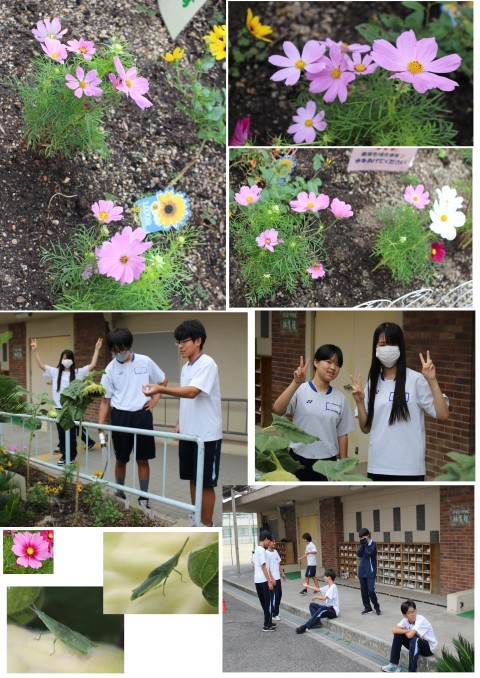 昨日のお昼休みに、コスモスを植えました。
