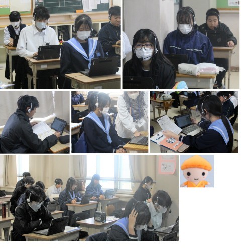 1~3限めにかけて各クラスごとに『オンライン英会話』を行いました。