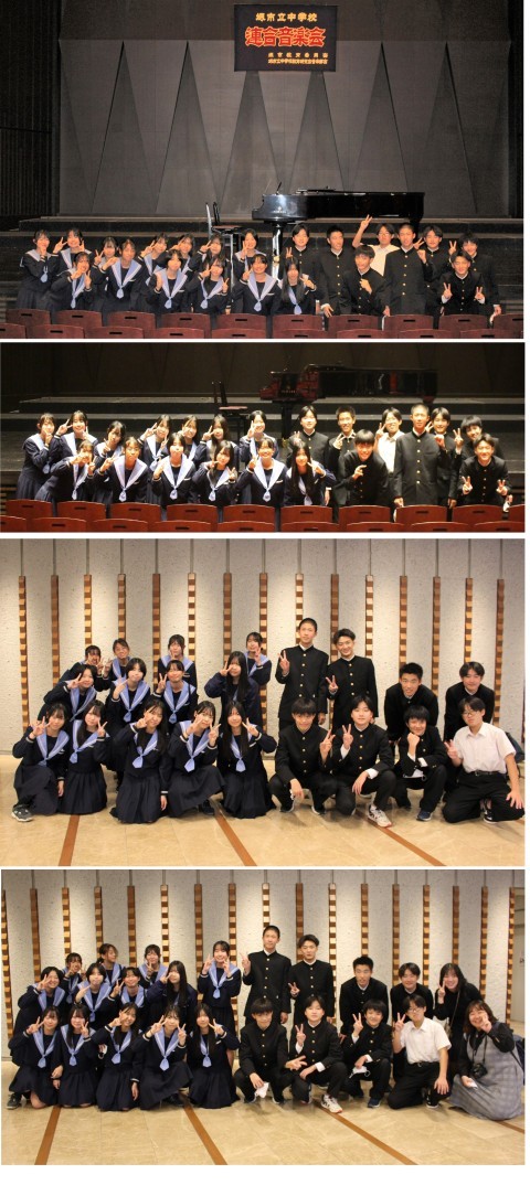 3年生 連合音楽会終了後、他校の先生から 「『民衆の歌』とてもよかったです。涙が出ました。」 とお声掛けいただきました。 私もシャッターを切りながら滂沱(ぼうだ)の涙でした。 そして、最後にみんなで記念撮影をしました。 達成感いっぱいの笑顔です♪ 保護者のみなさま、フェニーチェまでお越しいただきありがとうございました。