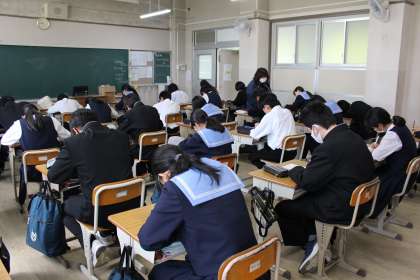 3年生の教室です。修学旅行の班分けや、高校のオープンスクールについての連絡がありました。「進路だより」にも掲載されていますが、これから各高校からオープンスクールや体験入学などの案内が届きます。高校のHPにも掲載されます。積極的な参加をお奨めします。