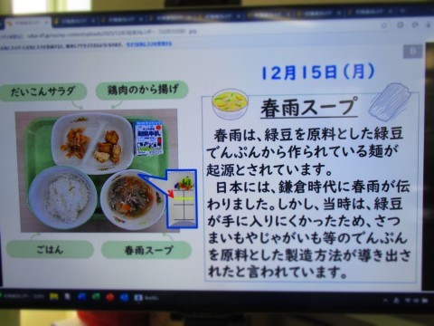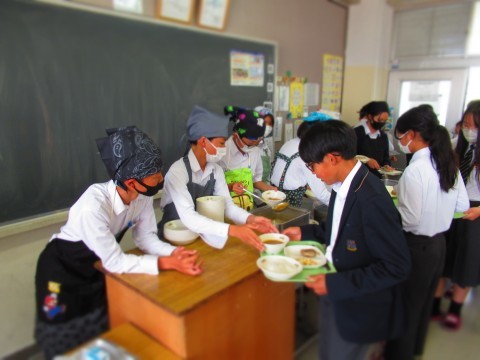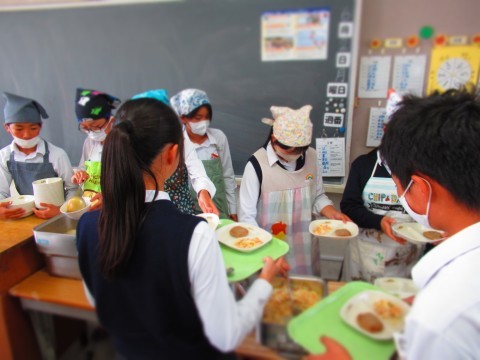 給食では、和食のよさを生かした、だしを使った汁物や、一汁二菜の献立を取り入れています。