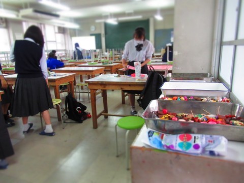 たけのこ学級調理実習には、多くの先生方がようすを見に来てくれました。
