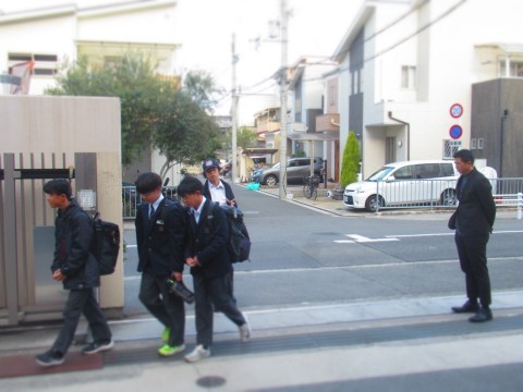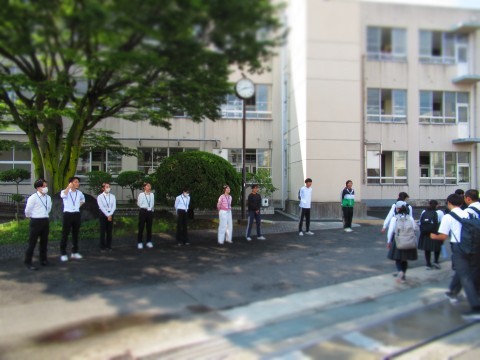 生徒会執行部のメンバーが集まり、あいさつ運動が始まりました。