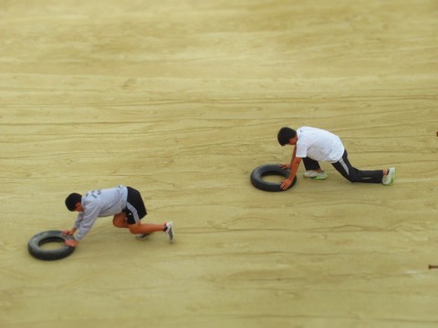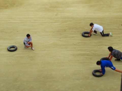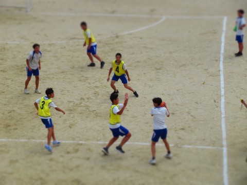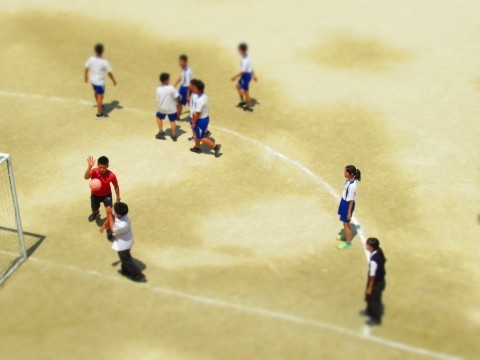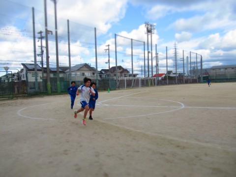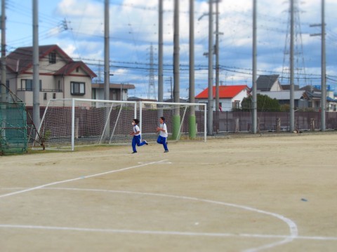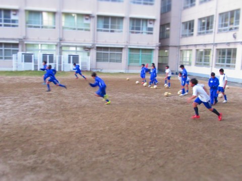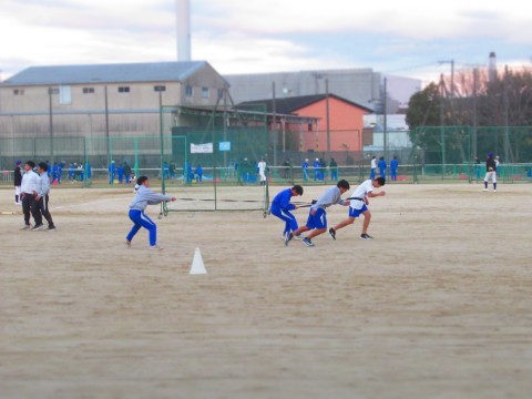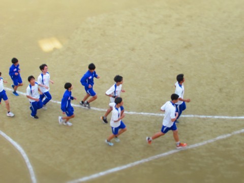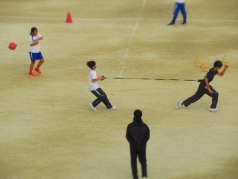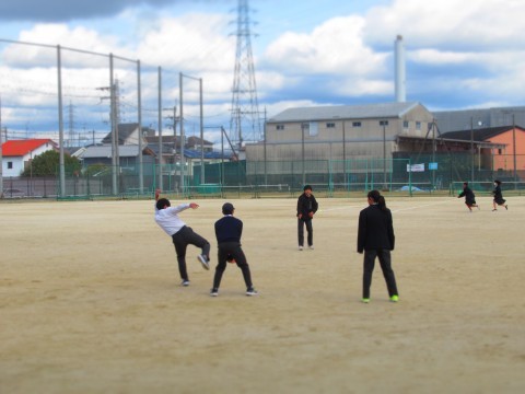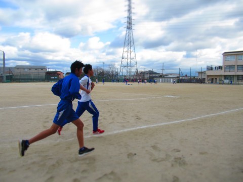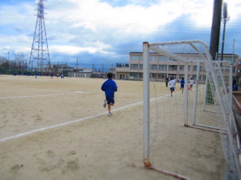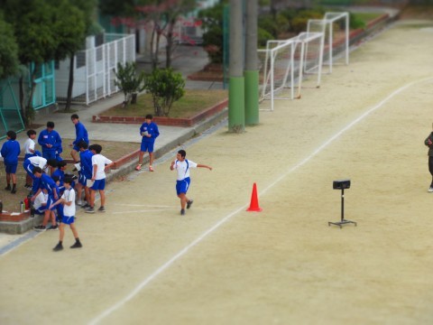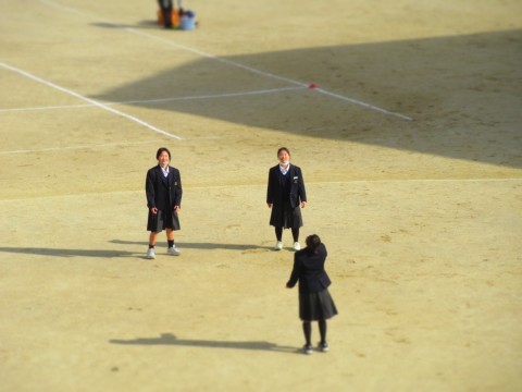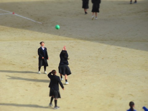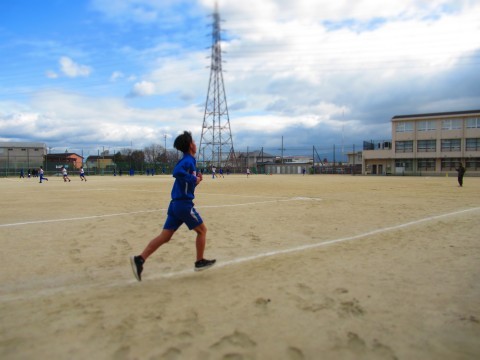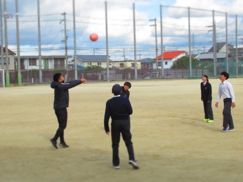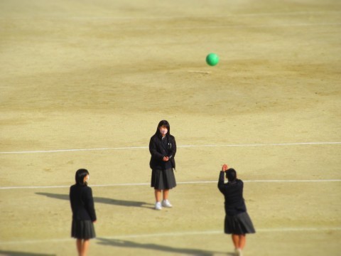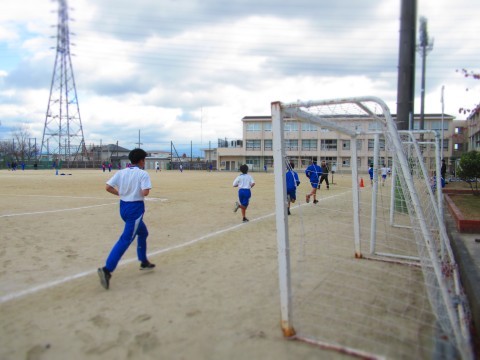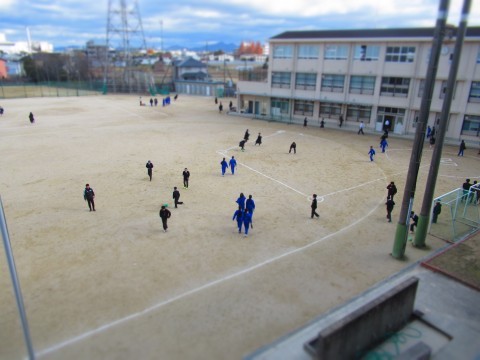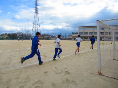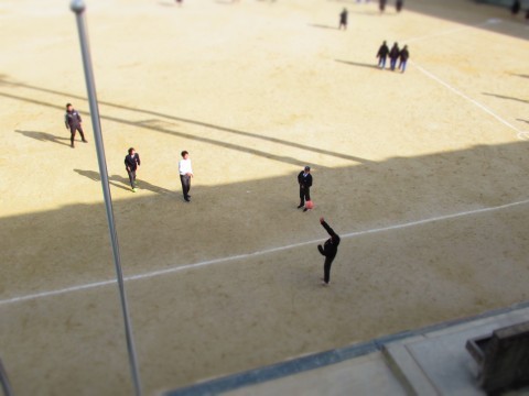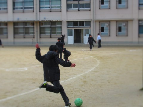 風速5m/sの冷たい北風が吹く昼休みのグラウンドには、元気にボール遊びをする生徒の姿が⛄