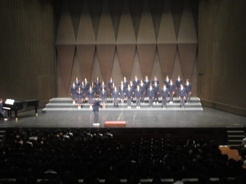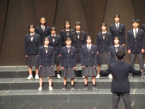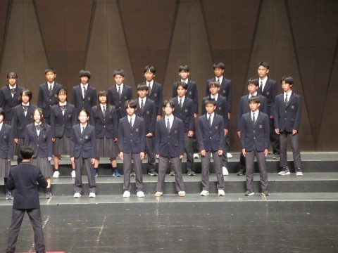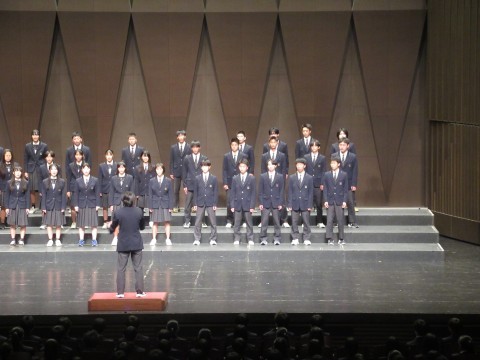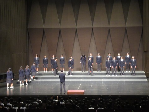 フェニーチェ堺の舞台で歌声を披露する生徒。