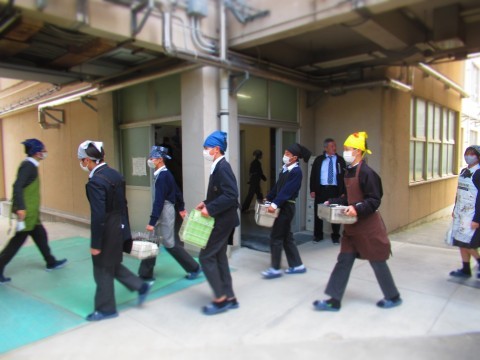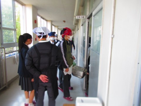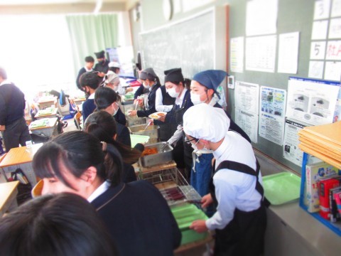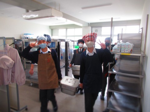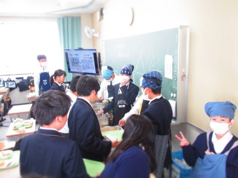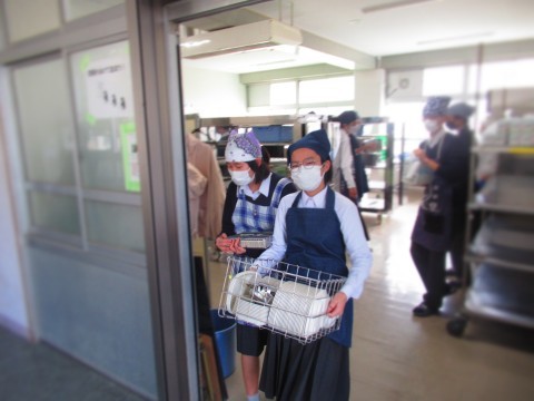 給食時間中のようすを紹介します。