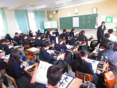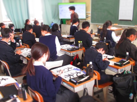 金岡高校書道科の先生に「書写」の授業をしていただきました。