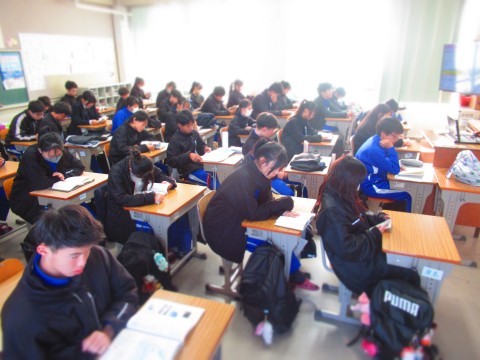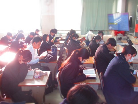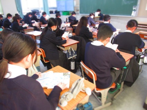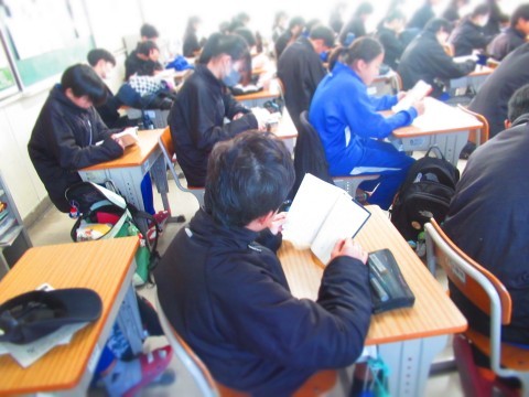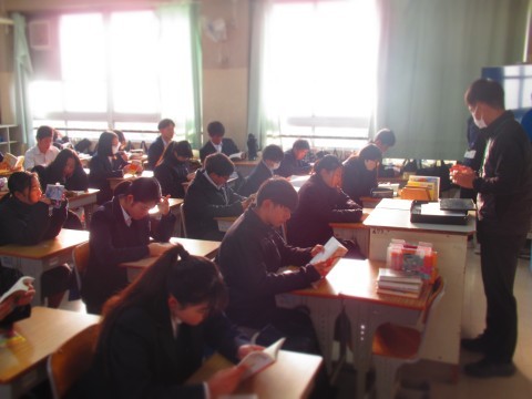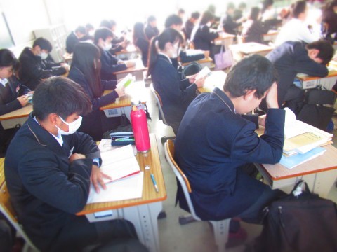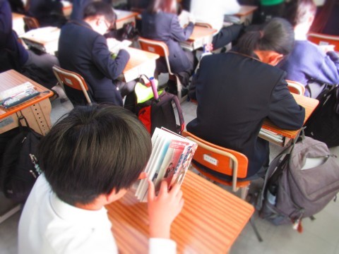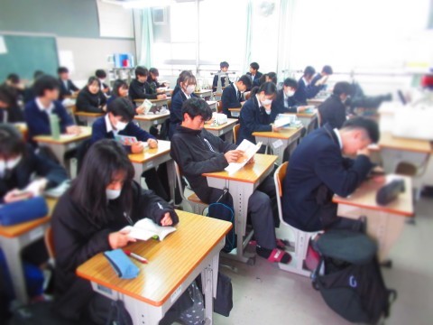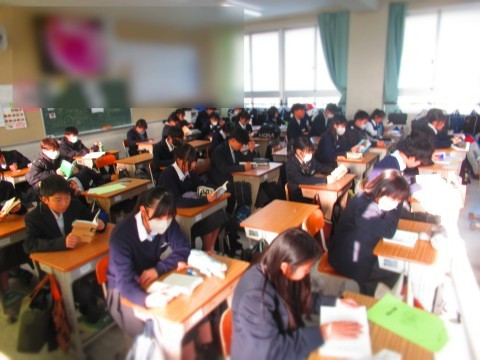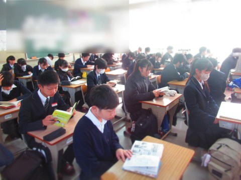 朝読書にはげむ南中生。