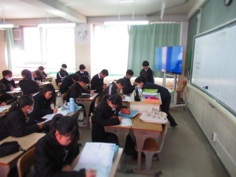 12/15㈪ 8組 自習道具と筆記用具を持って美術室へ