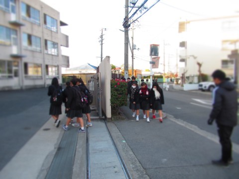 正門を通る生徒が最も多い時間帯。
