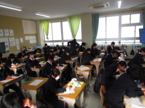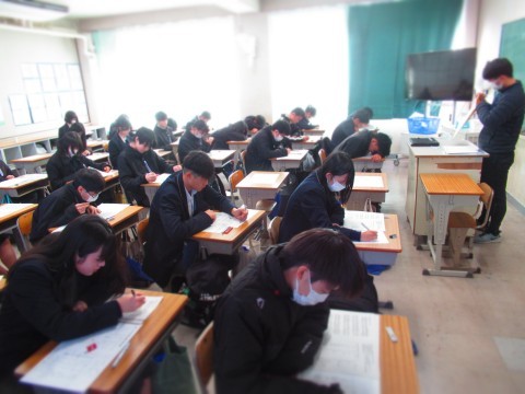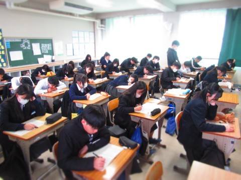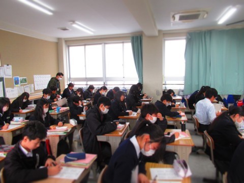 1月14日(水)、大阪府チャレンジテストがあり、1年生は3教科、2年生は5教科のテストを受けました。