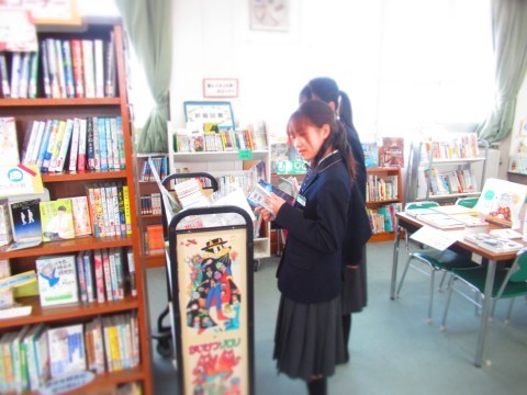 お昼休み、図書室のようすです。
