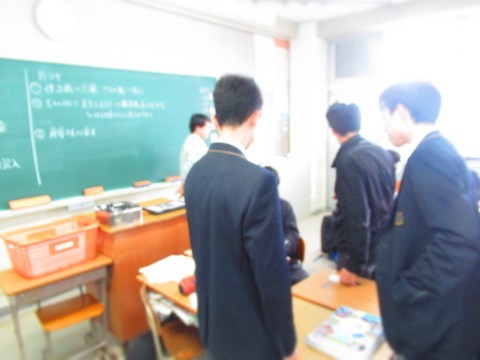 今日の一言:19日~26日の学活や総合で,沖縄戦の平和学習を行います。修学旅行に向けて,真剣に取り組みましょう!時間割:学,月2,月6,木5,木6,総※時間割注意6限 避難訓練(地震)【美術】16日 7組 教室で行います。教科書・資料集使います。【技術】技術の作品展に出したい人は20日(火)までに作品をもって堀田のところまで。<整美委員> 黒板消しクリーナー清掃の当番になっているクラスは,放課後に必ず清掃して帰ってください。【ダンス委員】掃除終わり次第 多目的集合!