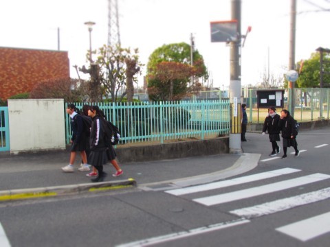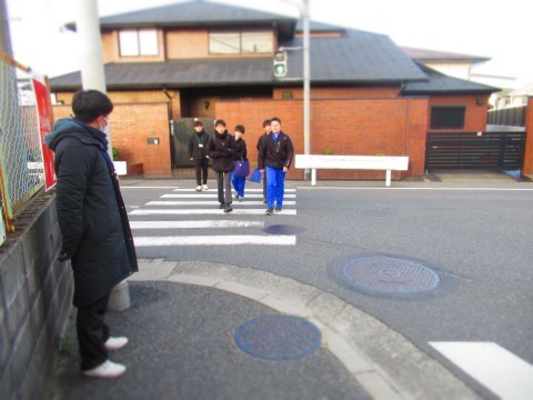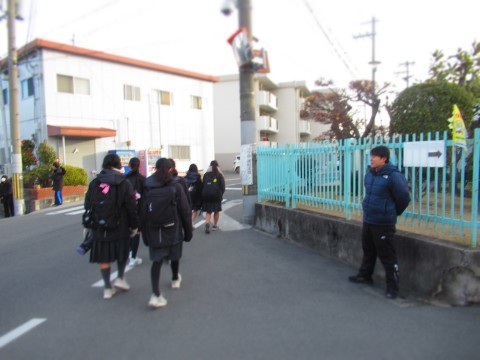 今日は見守るDAYで、学校周辺各地で一斉登校指導を行いました。