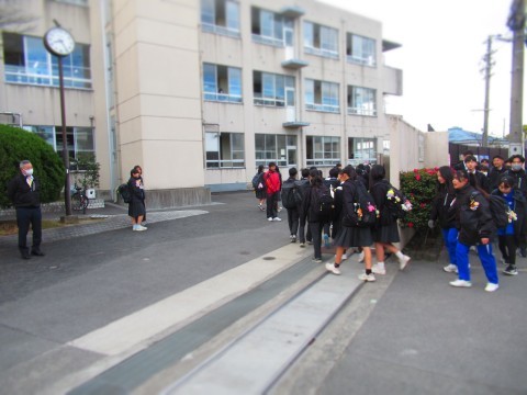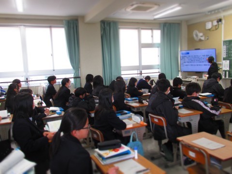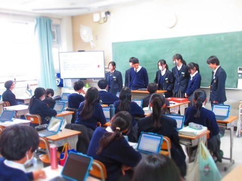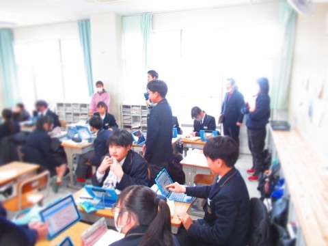今日の一言:今日の5限は研究授業で、先生方が見に来られます。51期生のがんばっている姿をしっかり見ていただきましょう!<明日の時間割>木1~6 (4限は百人一首の練習)【本日21日(水)の時間割変更】2組:3限目 英語→社会B(歴史)【美術】21日 1組・8組 美術室で行います。22日 4組・6組 美術室で行います。【国語】2/2(月)単元別漢字 学年末テスト範囲(p54~71)提出聞き取りテスト2/9(月)漢字小テスト(p54・55)【生徒会】リーダー講習会は自転車で行きます。ヘルメットを準備して8:10までに自転車を押してきてください。ヘルメットがない人は小谷に相談しに来てください。