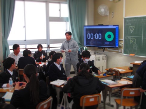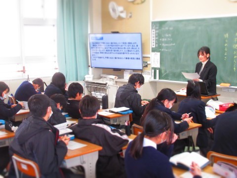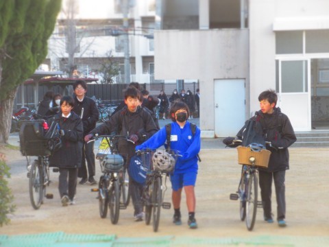 今日の一言:日常にある小さな感謝をたくさん見つけよう!あなたは何個見つけられますか?時間割:水12・学・水4〇水曜日の保健体育男子 1,2⇒学習室(自習道具必要) 8,9・5,6⇒体育館女子 グラウンド【アルティメットふりかえり提出】23日3~7組,26日1,2,8,9組【社会 阪田クラス】経済ゲームが終わったクラスは,次の時間からワーク(よくわかる社会の学習)を持参してください。経済ポートフォリオ提出日(すべて授業時)3組:1/21(水) 5組:1/23(金) 6組:1/21(水) 9組:1/22(木)【清教学園を受験する生徒へ】20日(火)より入金可能です。21日(水)3限の出願指導の際に願書を持ってきてください。朝,担任の先生に預けなくていいです。もし事情があって21日に持ってこれない生徒は小出までお知らせください。