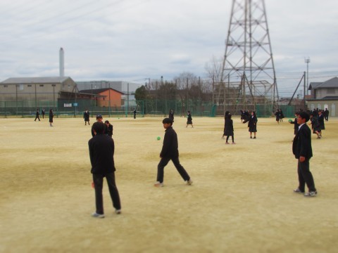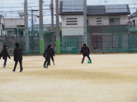 寒い日が続いていますが、こどもたちはグラウンドに出てボール遊びをしています。