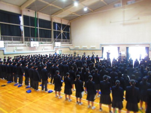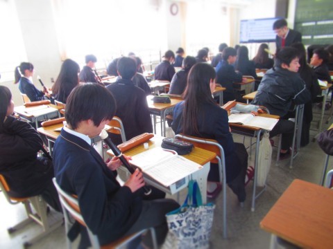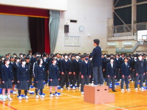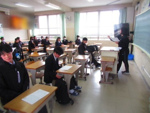 3年生は残りの登校日数は4日、1,2年生は9日となります。今日の時間割は、火2・火3・火5・学活の4時間授業です。3年生はいよいよ明日、公立一般入試です。この日のためにたくさんの努力を積み重ねてきましたね。明日は持てる力をすべて発揮して、最高の結果をつかみ取ってください。全職員49期生を応援しています。頑張れ49期性!!