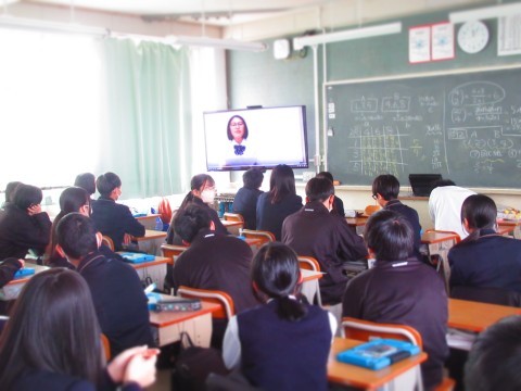 2年生英語科で実施している「オンライン英会話」。