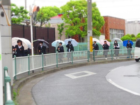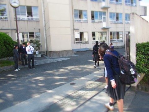 「みなさん、左側通行ですよ。前髪出てませんか。」