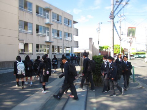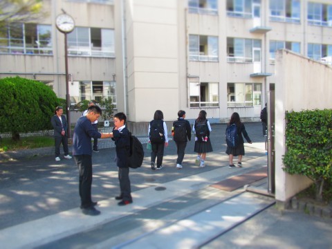 学年目標「思いやりの心 ~協力・努力・全力~」【明日の時間割】・水1~4 道徳 朝読書スタート!持ち物:授業準備、朝読書の本【美術】1組は明日デザインセットを持ってきてください。【体育】火曜日の保健体育 ※1,2,6,7,8,9⇒油性ペン持参!6⇒体育ファイル持参!【体育】水曜日の保健体育 *水筒持参男子 4,5⇒体育館、8,9⇒グラウンド 女子 男子と同じ[持久走実施日] 24日3組、27日1,2,4,5組、28日6,7,8,9組【部活動 更衣について】男子は更衣したい場合は職員室に更衣室のカギを取りにいき、最後の人は必ず職員室に返しに行くようにしてください。4/23(木)【時間割変更】1-2 2限 総→理科2 4限 理科2→総1-7 4限 音→理科2