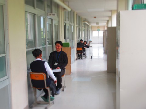 1年生は、学年主任の堀田先生の最終チェックを受けて配膳室へ!