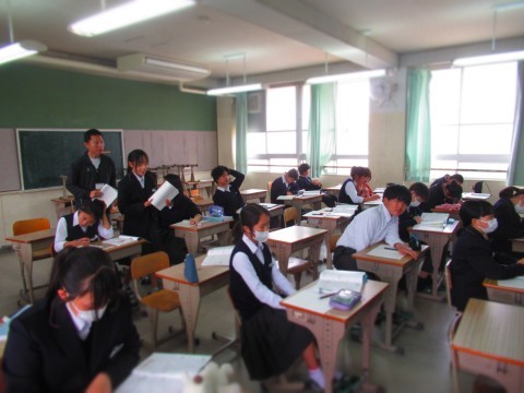今日の一言:学級旗が決定しましたね!いよいよ放課後に制作が始まります。制作に協力してくれる人、ありがとう!!<明日の時間割>火1~5放課後、学級旗の制作があります。制作する人は、体操服の準備をしましょう!1,2組→1組3,4組→2組5,6組→3組7,8組→4組 に集合してください!