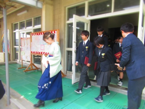 体育館から出てくる卒業生の表情が、式のすばらしさや3年間の思い出を物語っていました。